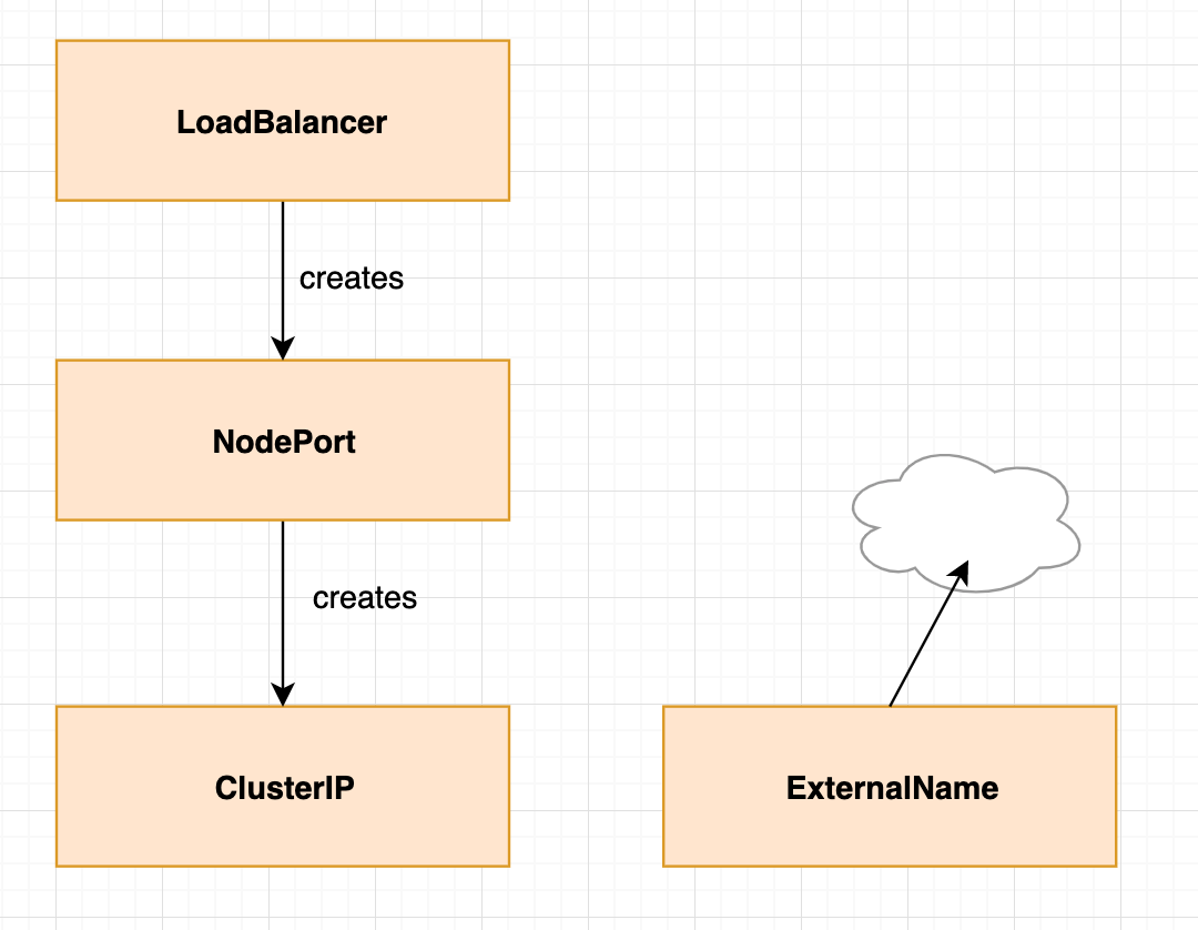 当我们创建一个 NodePort 的 Service 时,它也会创建一个 ClusterIP,而如果你创建一个 LoadBalancer,它就会创建一个 NodePort,然后创建一个 ClusterIP